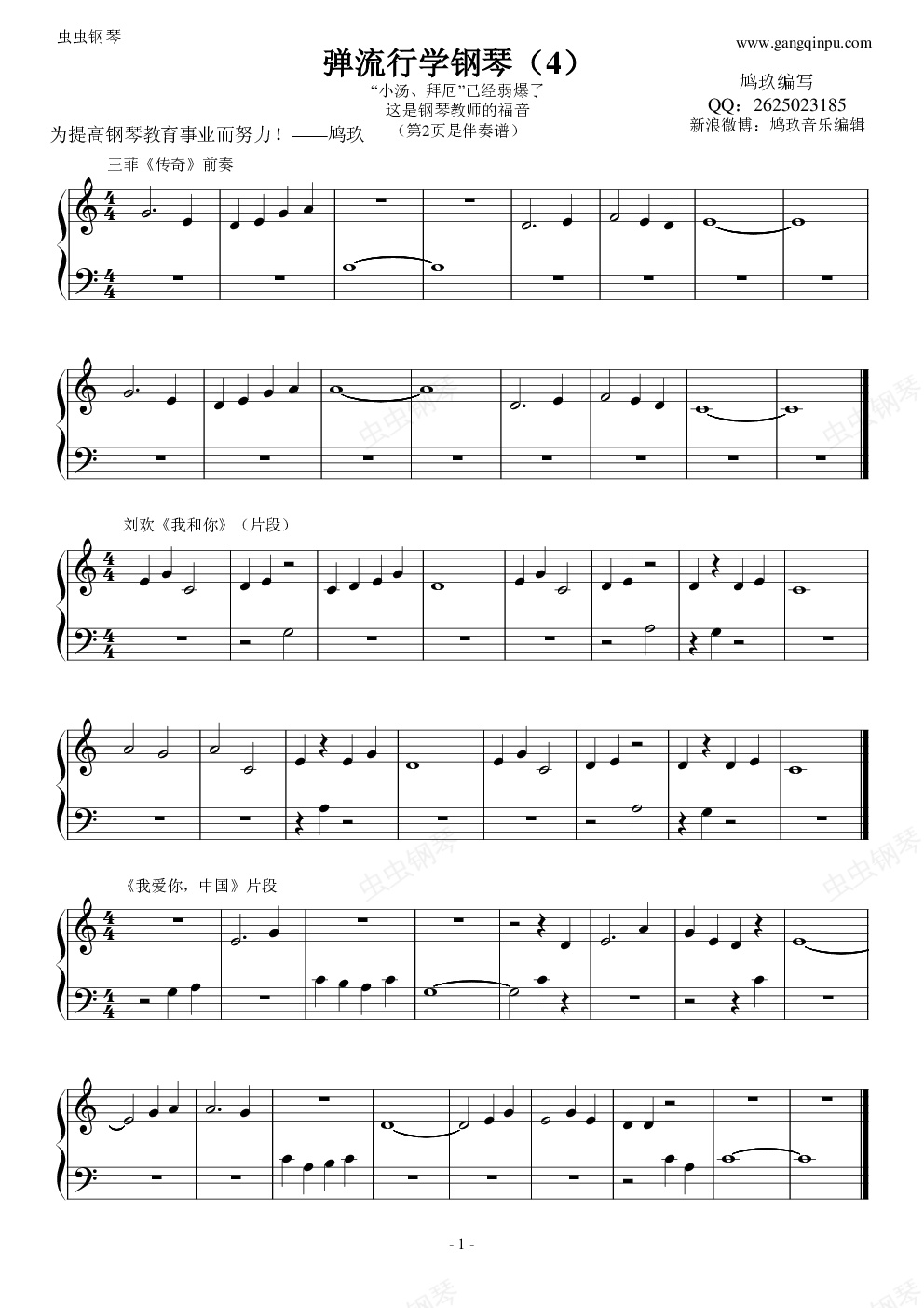 钢琴谱:弹流行学钢琴(4)可替代小汤