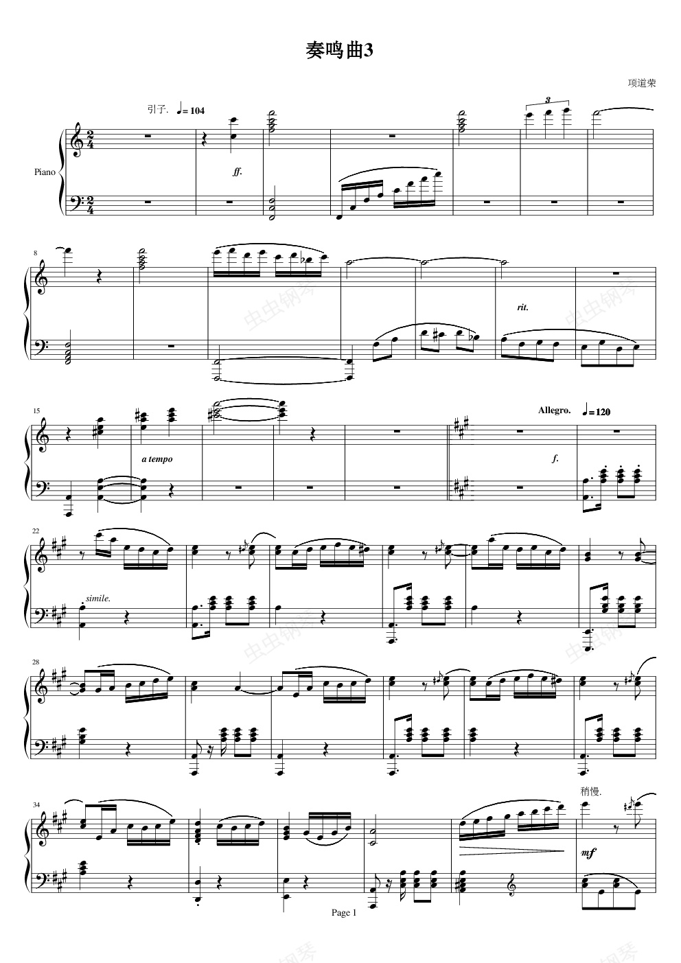 钢琴谱:钢琴奏鸣曲Ⅲ