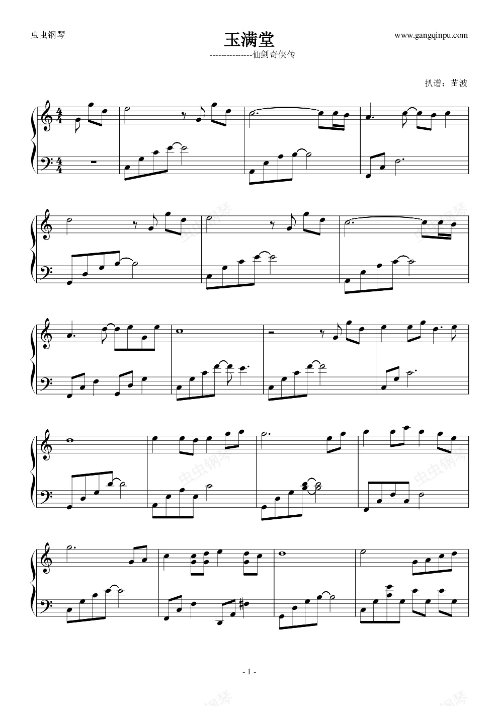 钢琴谱:玉满堂-柔情钢琴版