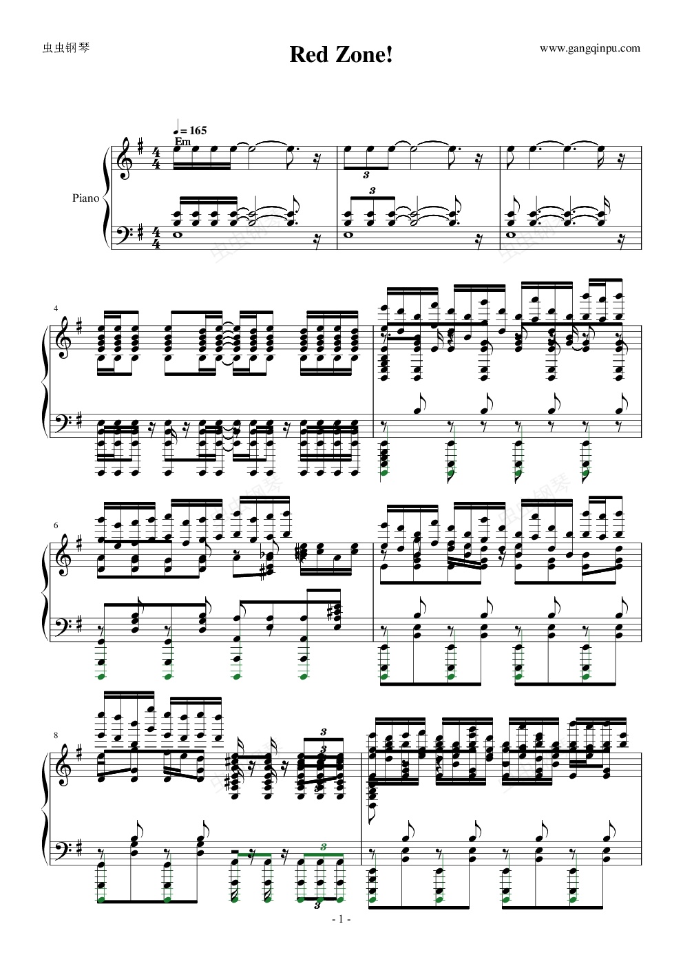 钢琴谱:Red Zone