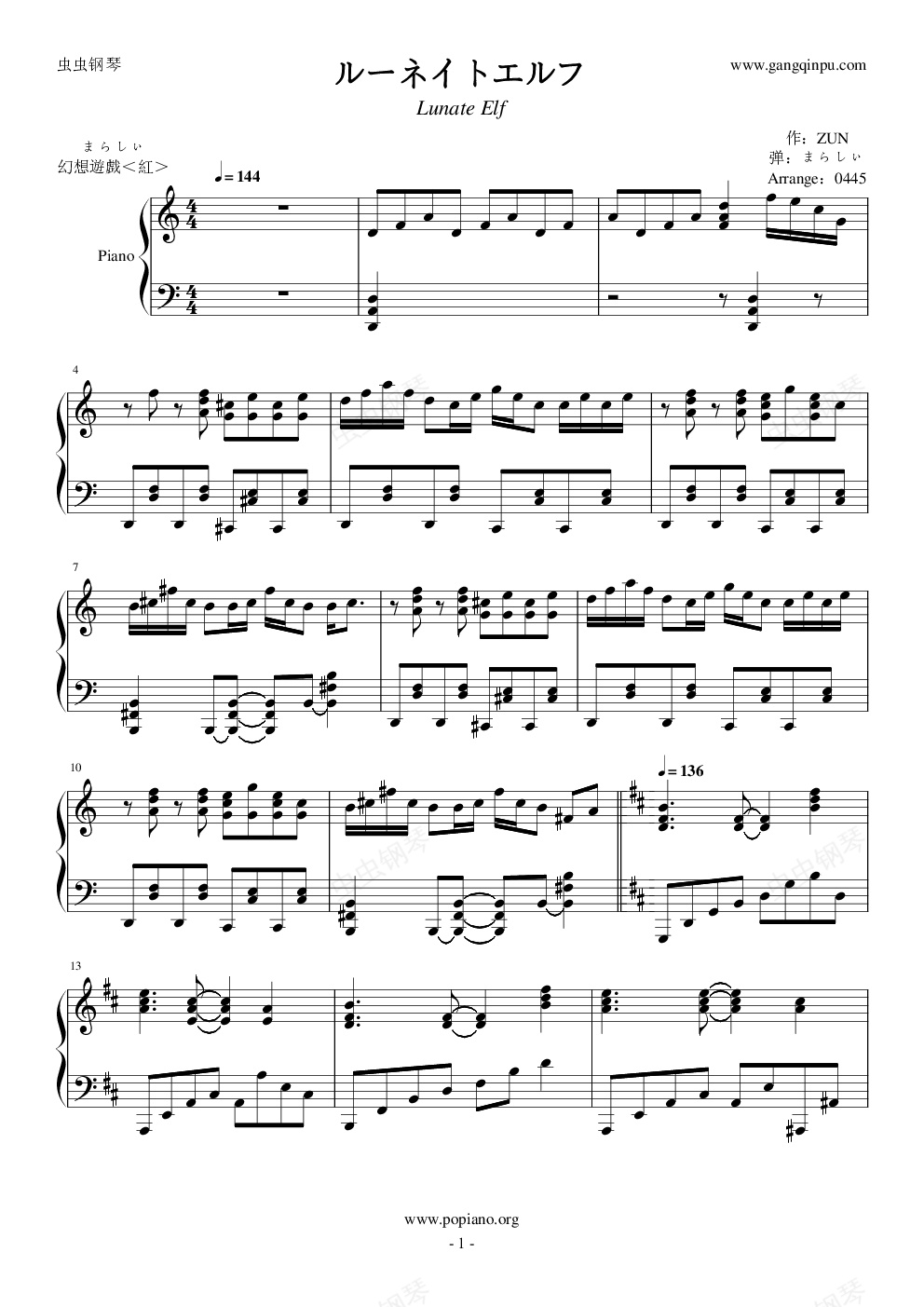 钢琴谱:【东方红魔乡】【触手猴】ルーネイトエルフ