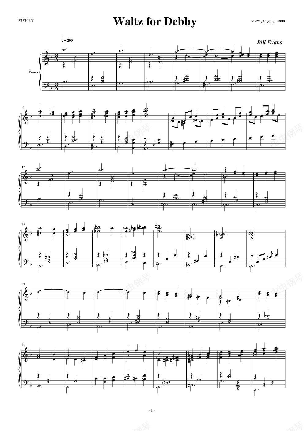 钢琴谱:Waltz for Debby【独奏】
