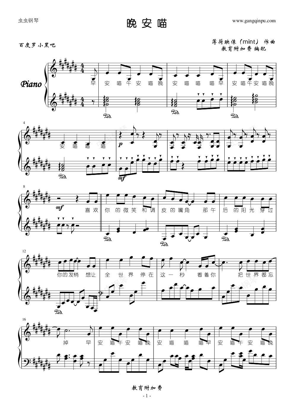 钢琴谱:【罗小黑战记】MV.晚安喵