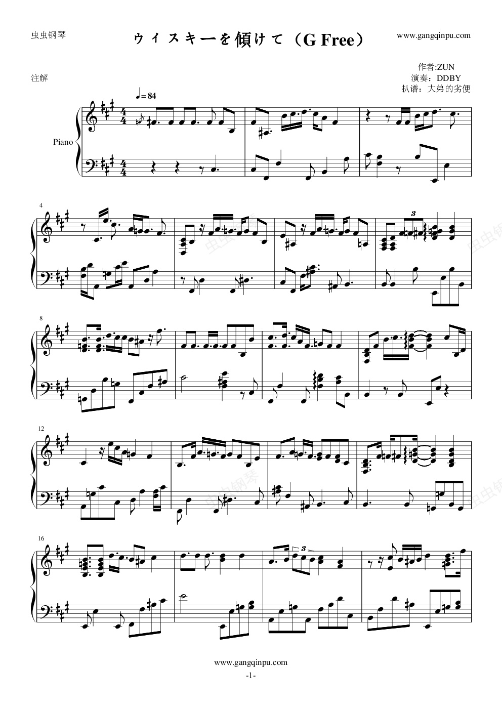 钢琴谱:【东方官碟】【大空魔术】ウィスキーを傾けて (G Free)