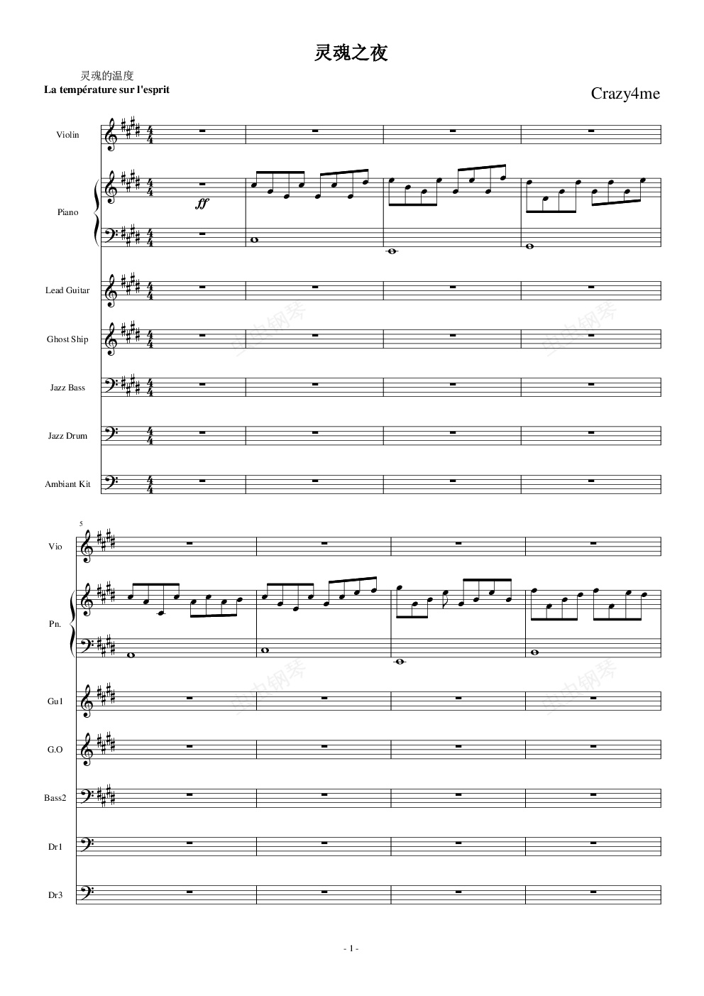 钢琴谱: 灵魂之夜