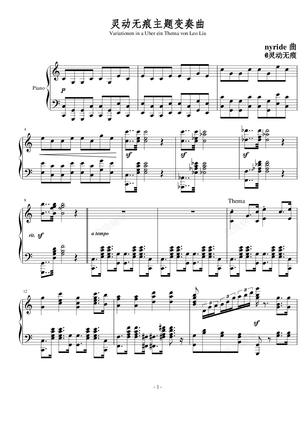 钢琴谱:灵动无痕主题变奏曲