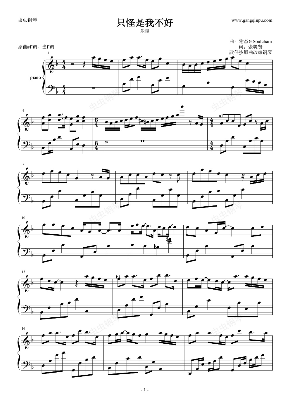 您的位置: 首页 > 钢琴谱库 > 只怪是我不好