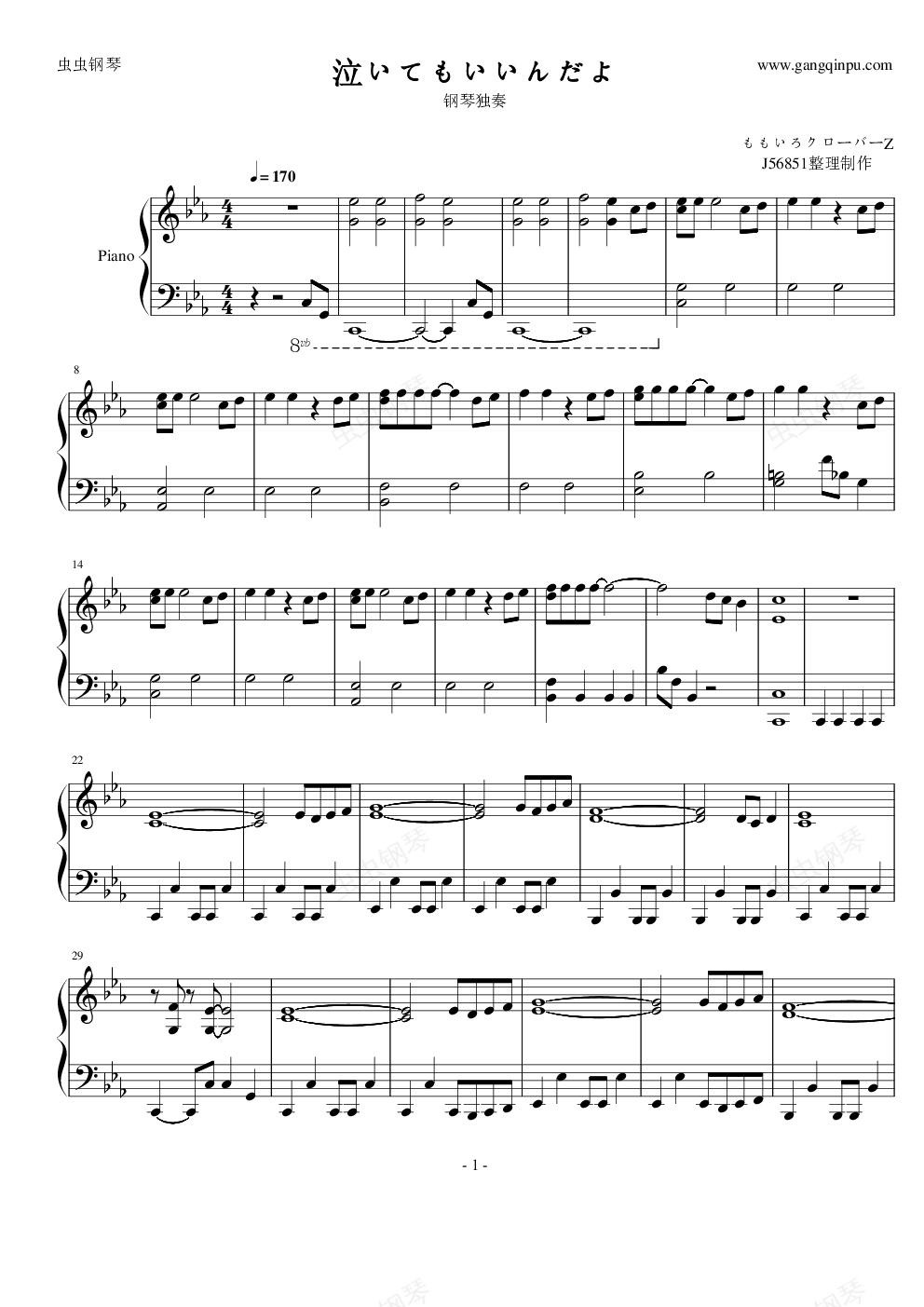 钢琴谱:泣いてもいいんだよ