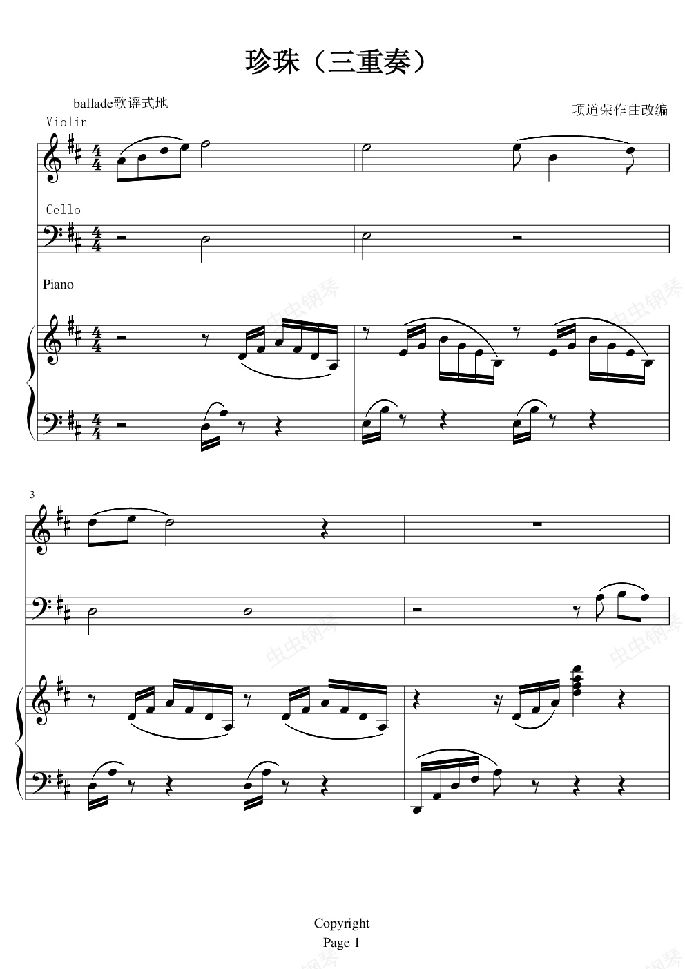 珍珠(钢琴、小提琴、大提琴三重奏)