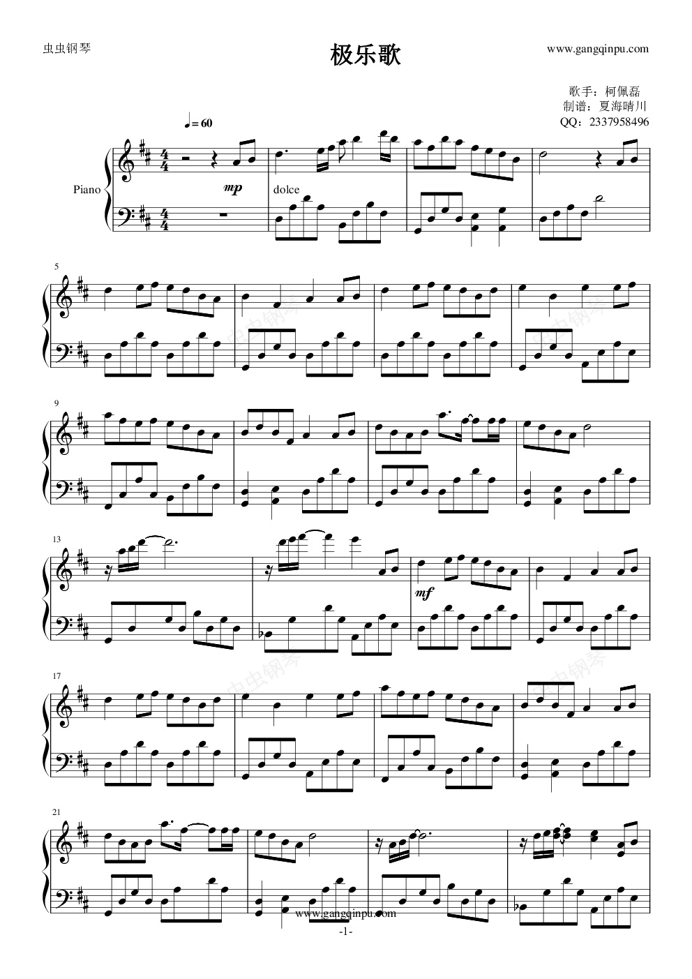 钢琴谱:极乐歌(0.95版)