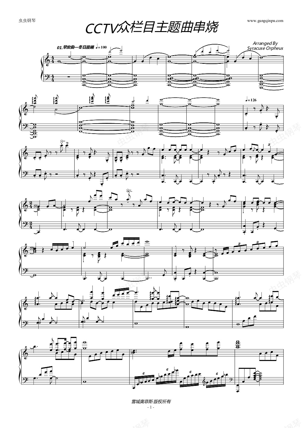 钢琴谱:CCTV栏目主题曲串烧(14首)