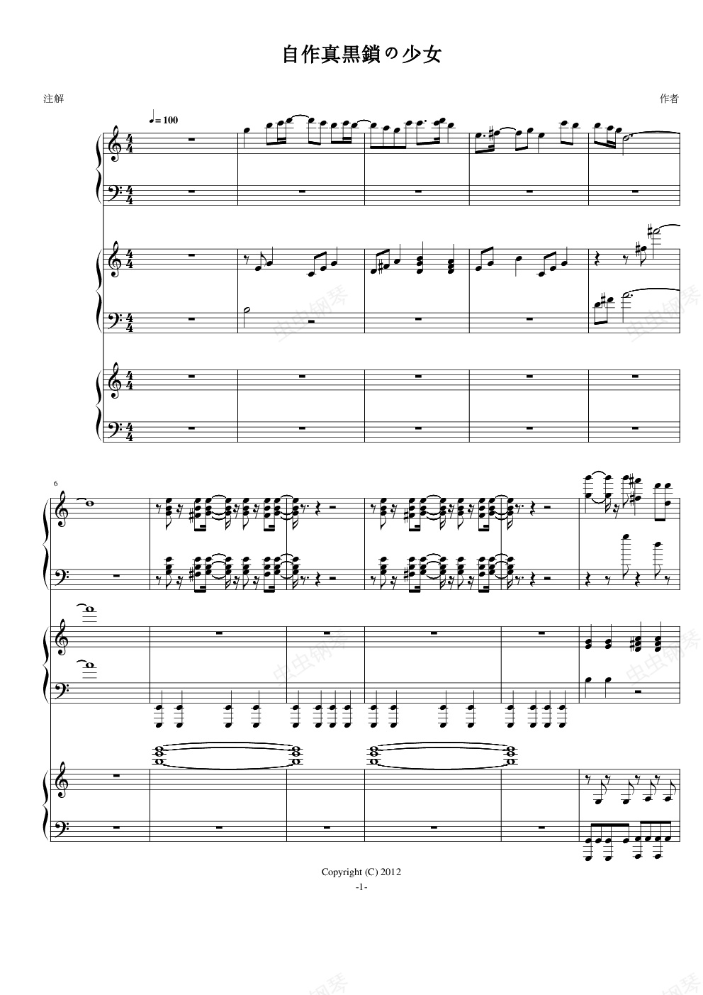 钢琴谱:【黑】锁の少女