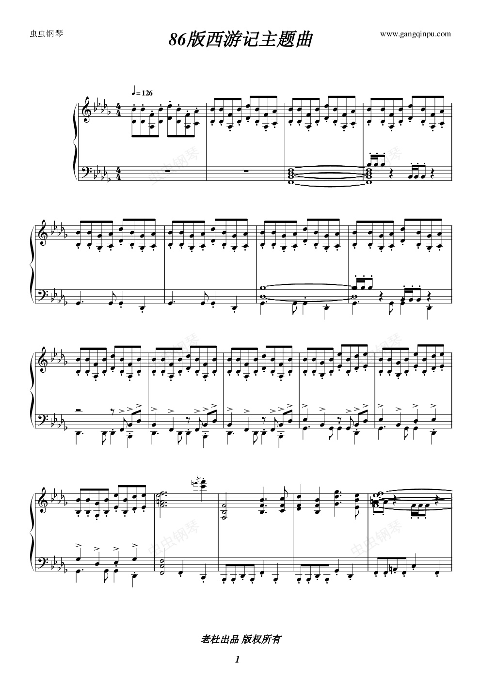钢琴谱:86版西游记主题曲-片头曲