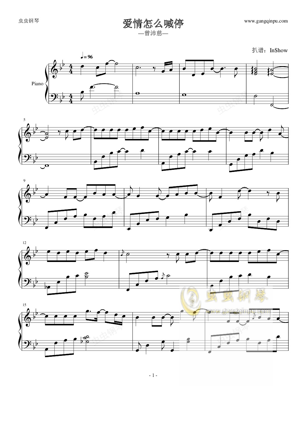 钢琴谱:爱情怎么喊停-曾沛慈