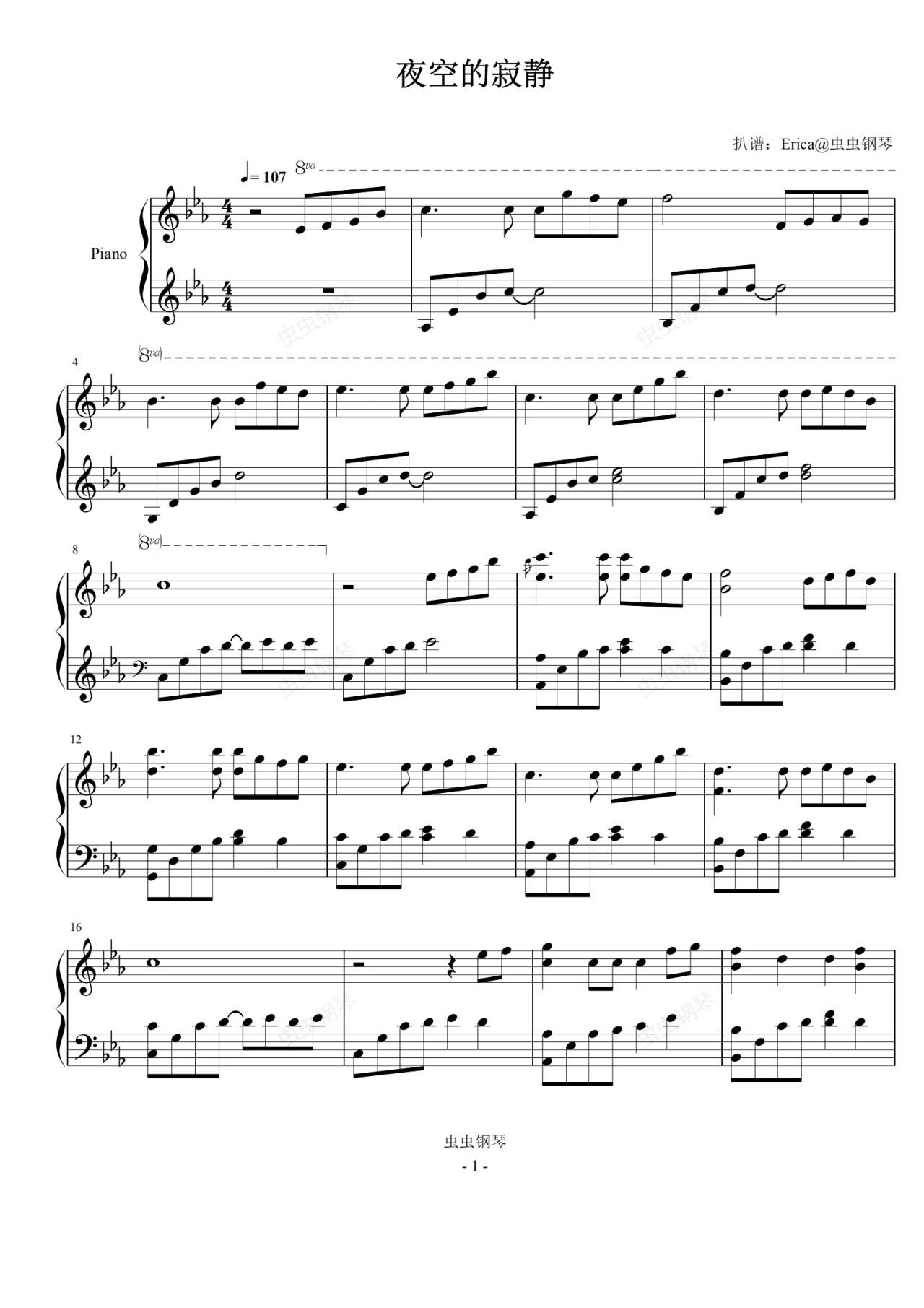 钢琴谱:夜空的寂静(夜色钢琴)