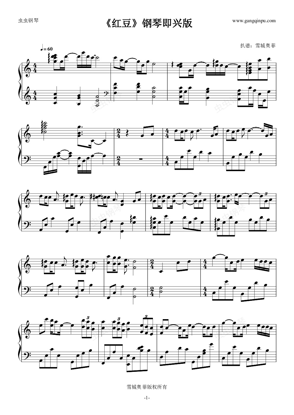 钢琴谱:《红豆》钢琴即兴版