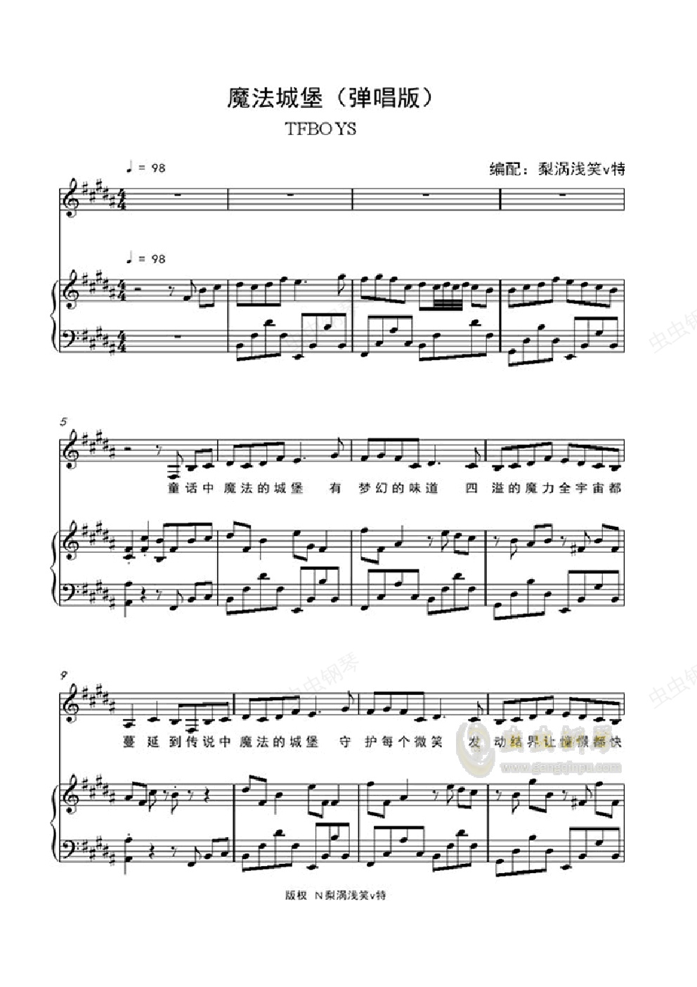 钢琴谱:魔法城堡(弹唱版)