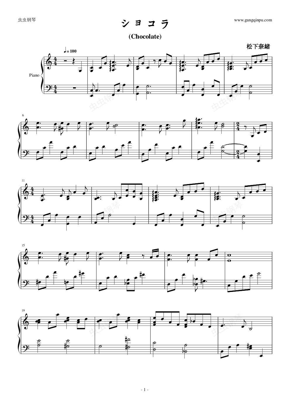 钢琴谱:Chocolate【独奏】
