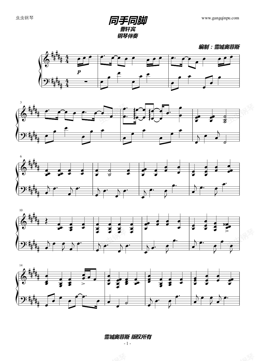 钢琴谱:同手同脚