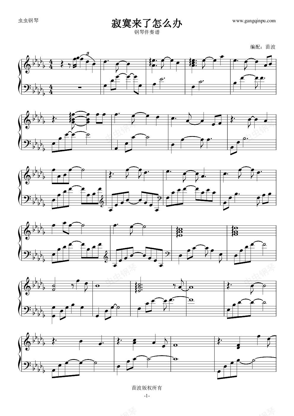 钢琴谱:寂寞来了怎么办