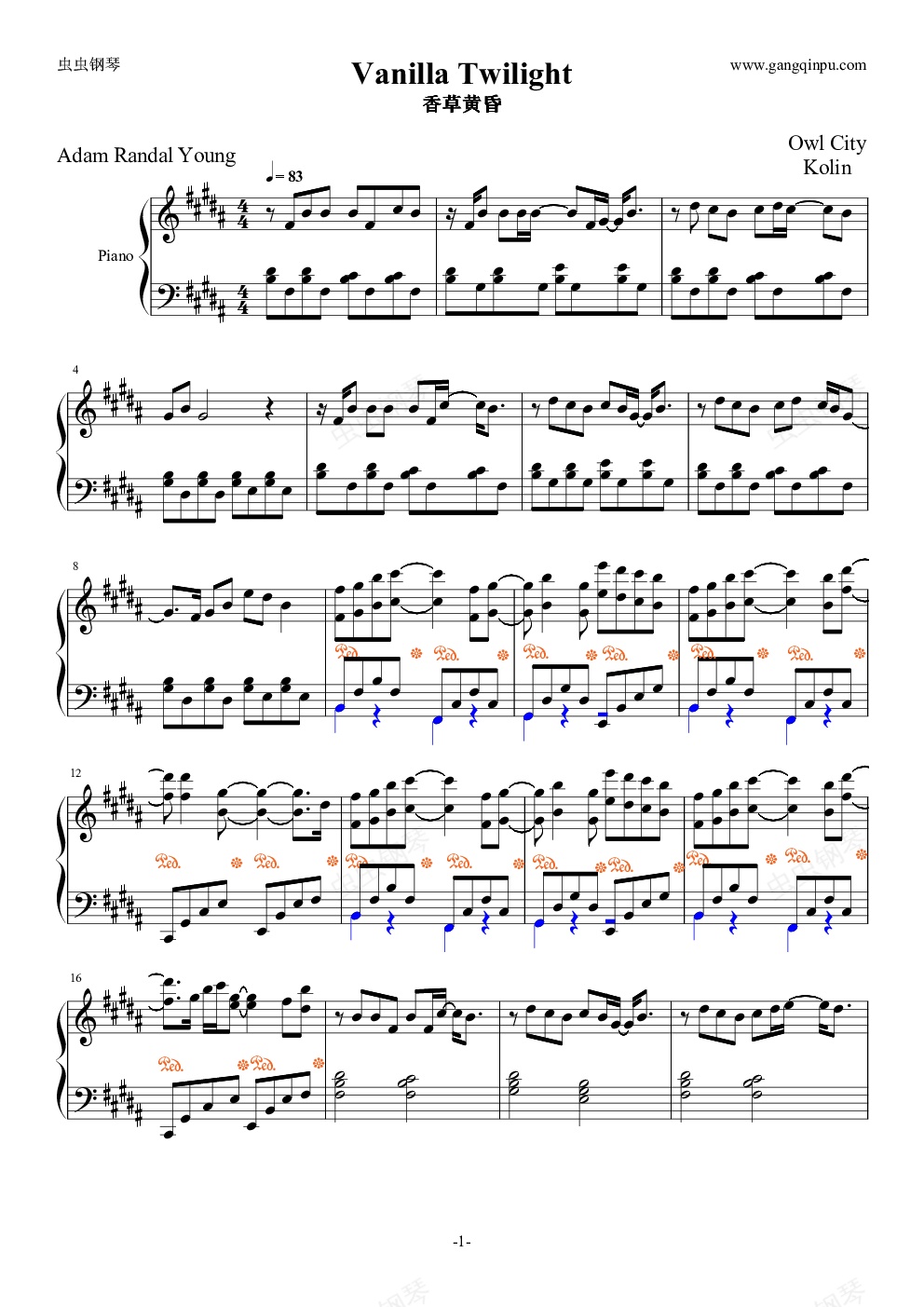 钢琴谱:Vanilla Twilight 香草黄昏