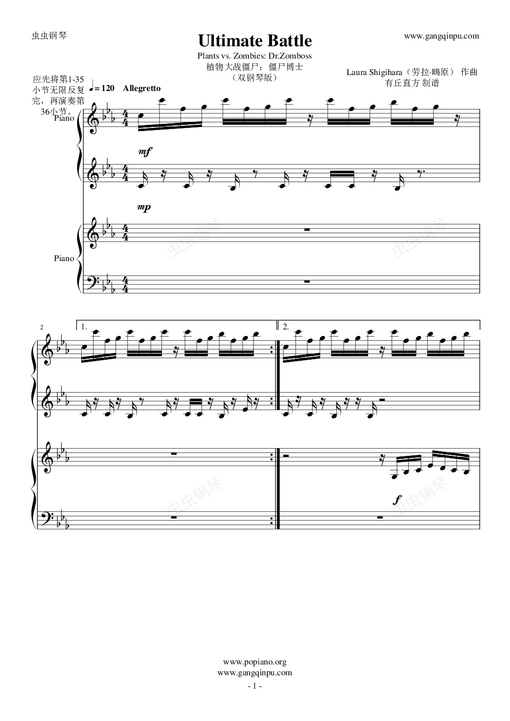 钢琴谱:植物大战僵尸,僵尸博士(双钢琴版)