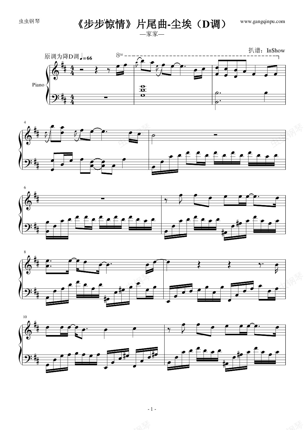 钢琴谱:《步步惊情》片尾曲-尘埃(D调)-家家