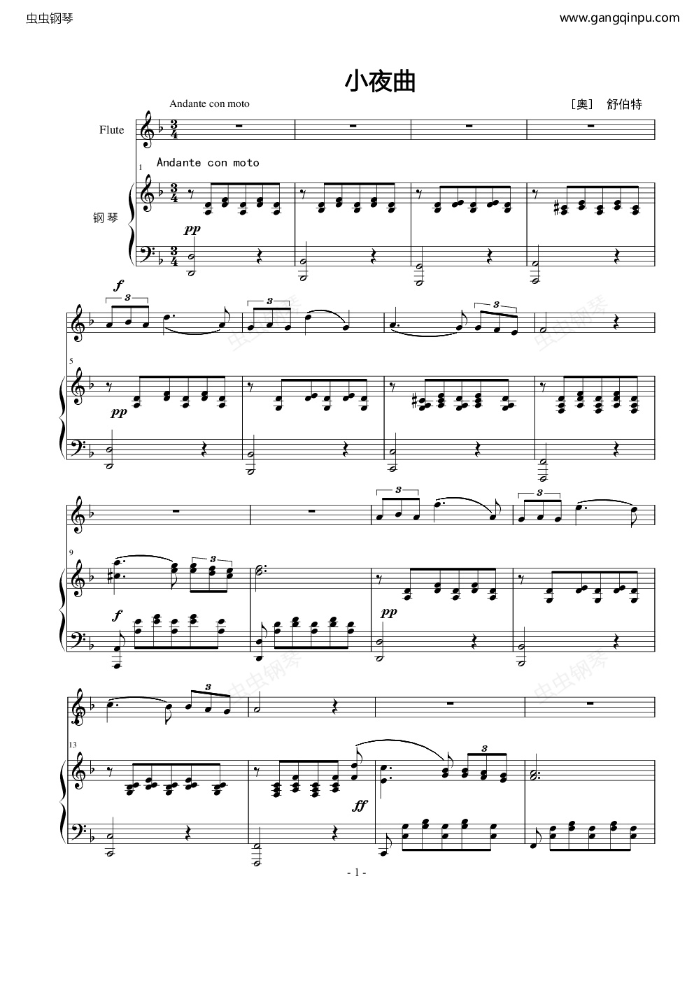 钢琴谱:舒伯特小夜曲 ove 格式长笛笛钢琴伴奏