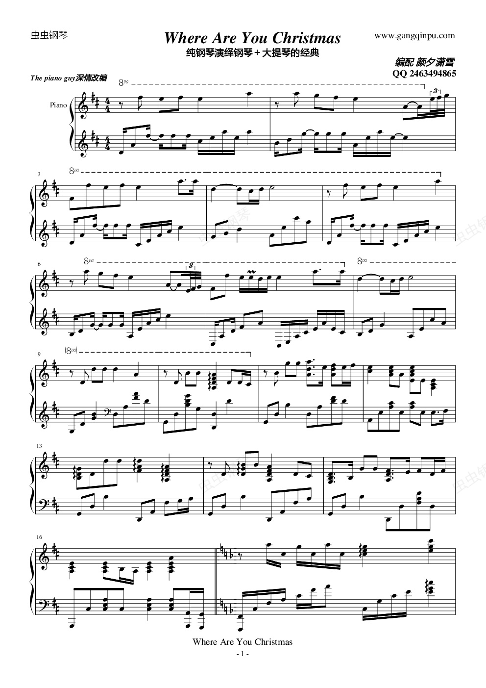 钢琴谱:Where Are The Christmas完美纯钢琴版