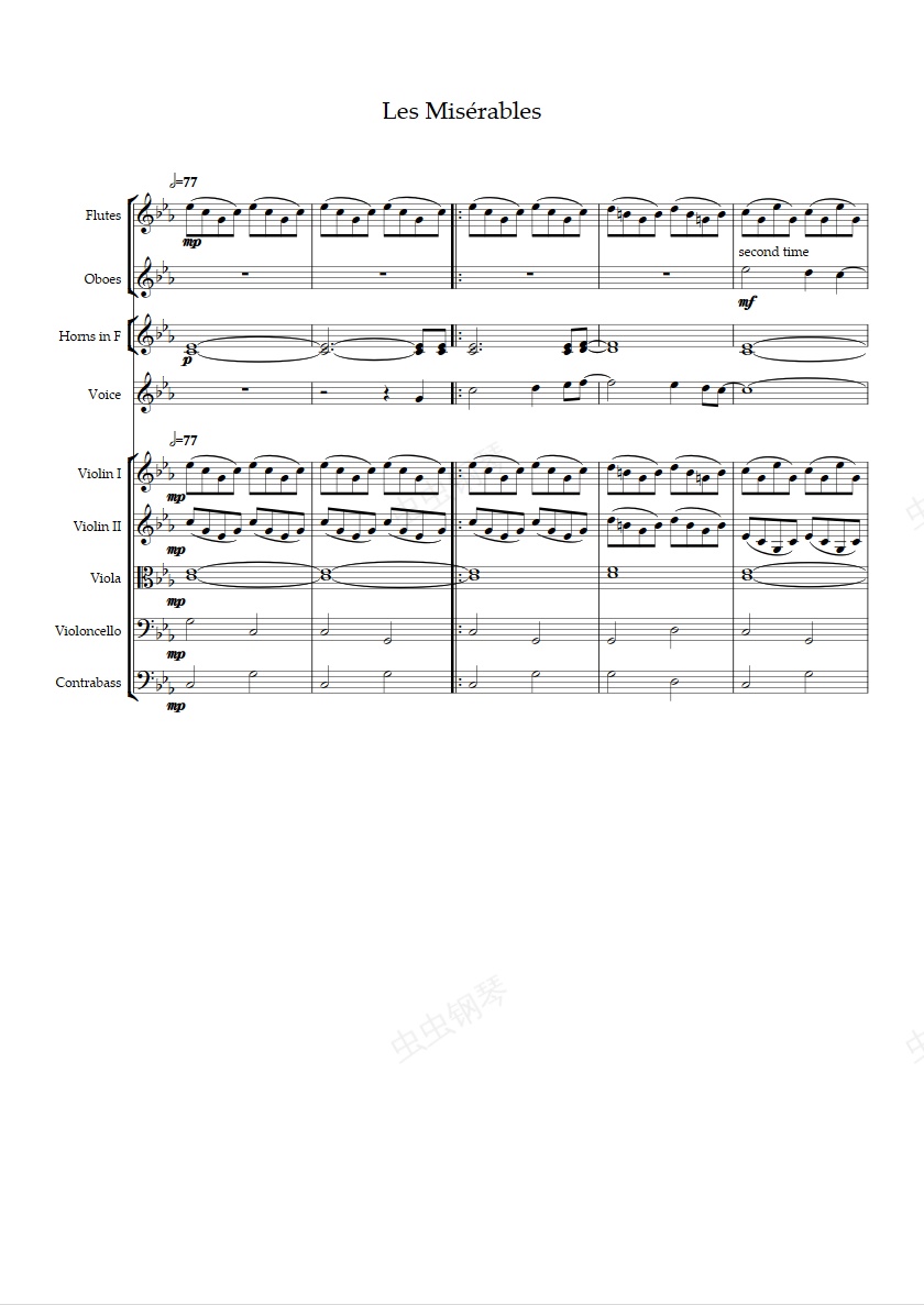 钢琴谱:Les Misérables 悲惨世界动画片主题