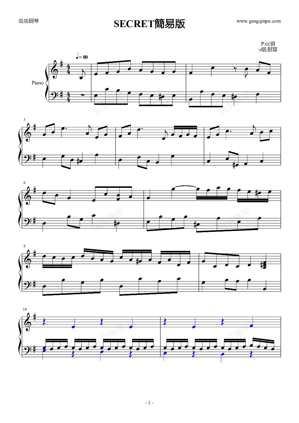钢琴谱:SECRET簡易版