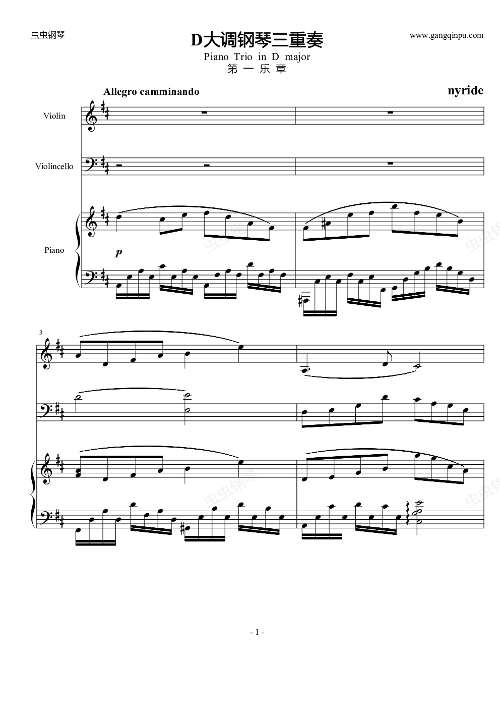钢琴谱:原创:D大调钢琴三重奏第1乐章