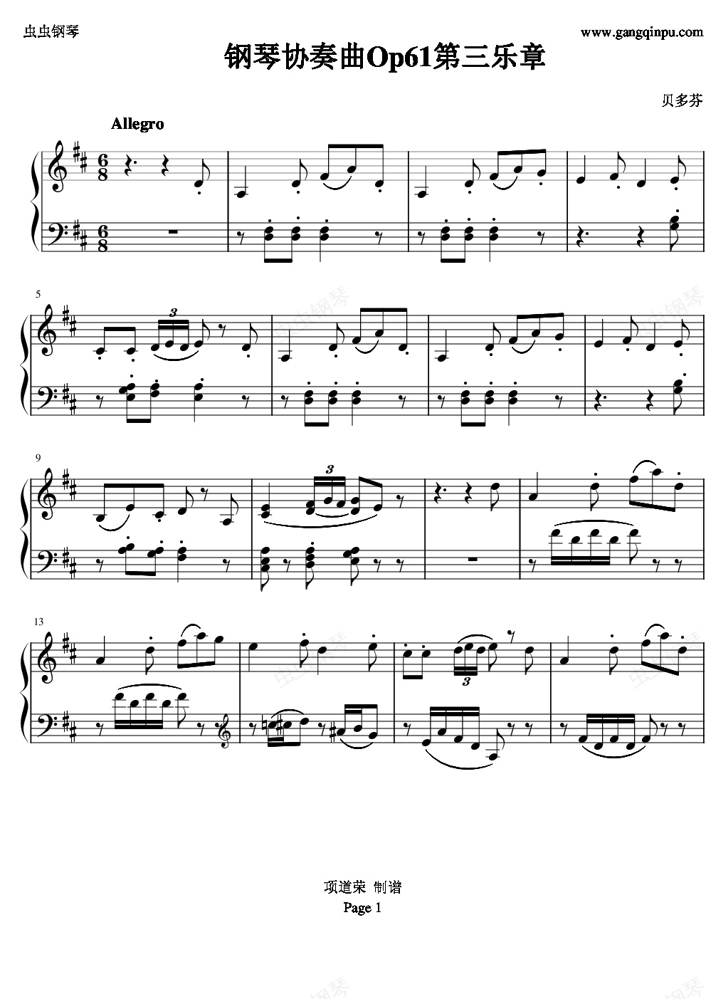 钢琴谱:贝多芬钢琴协奏曲Op61第三乐章