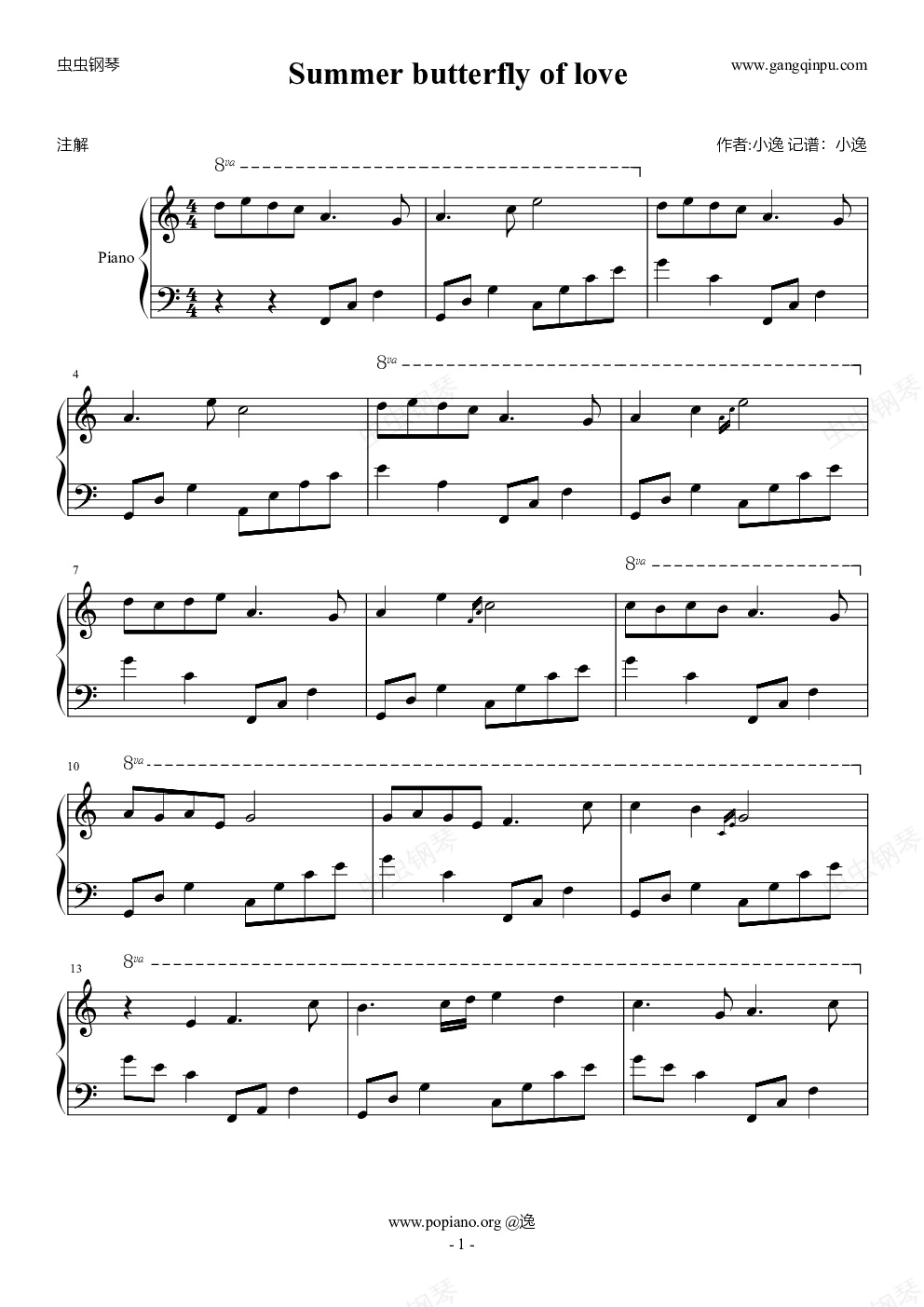 钢琴谱:Summer butterfly of love