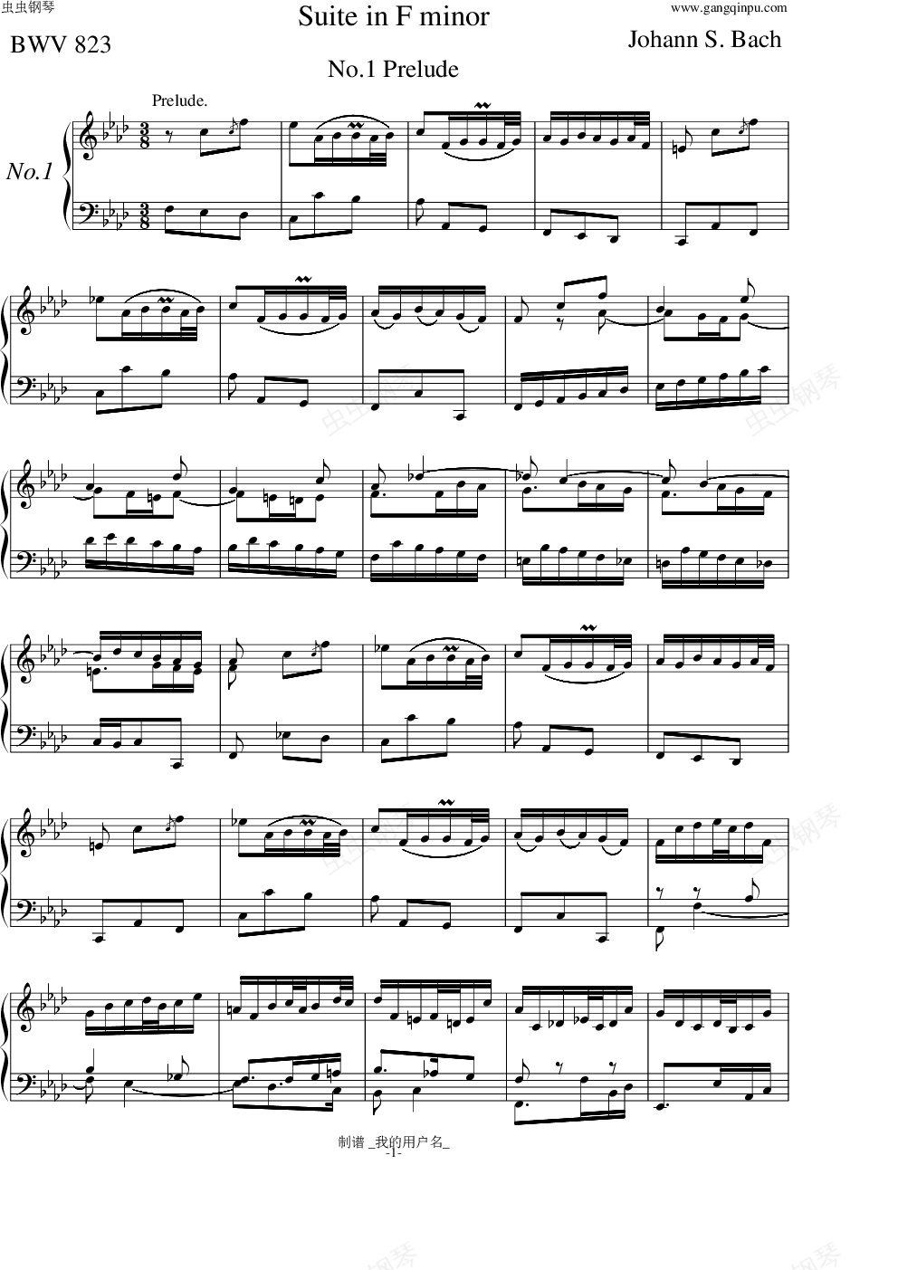 钢琴谱:巴赫BWV823 No.1前奏曲(巴赫初级钢琴曲集最后一首)