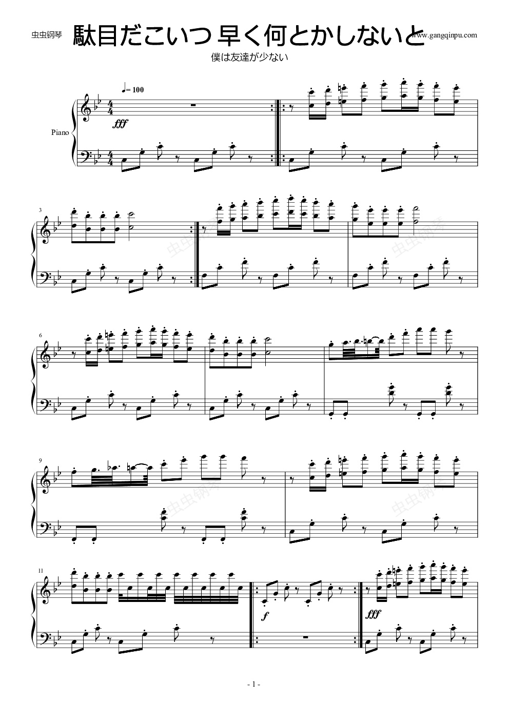 钢琴谱:駄目だこいつ 早く何とかしないと