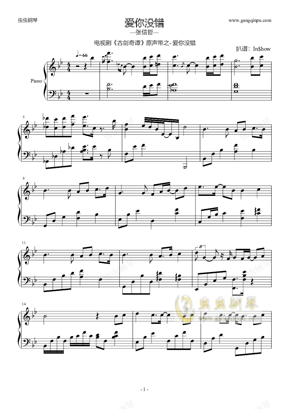 钢琴谱:爱你没错-电视剧《古剑奇谭》原声带之一