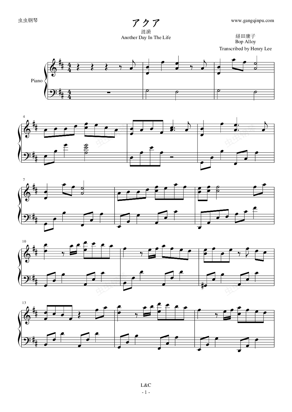 钢琴谱:涟漪(Another Day In The Life)