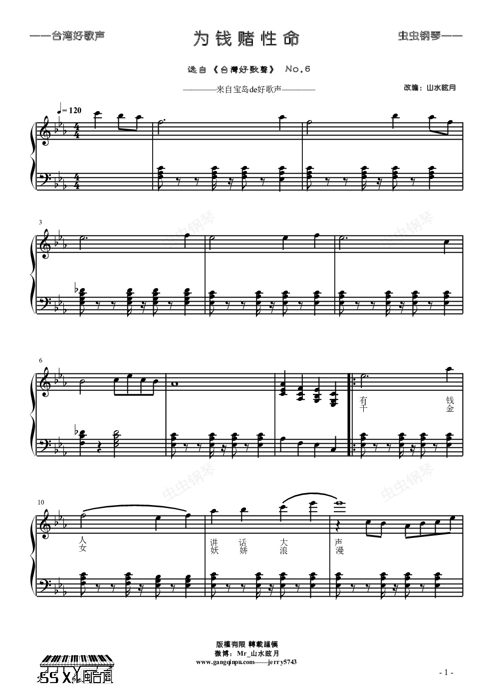 钢琴谱:好歌聲06.为钱赌性命(含歌词)