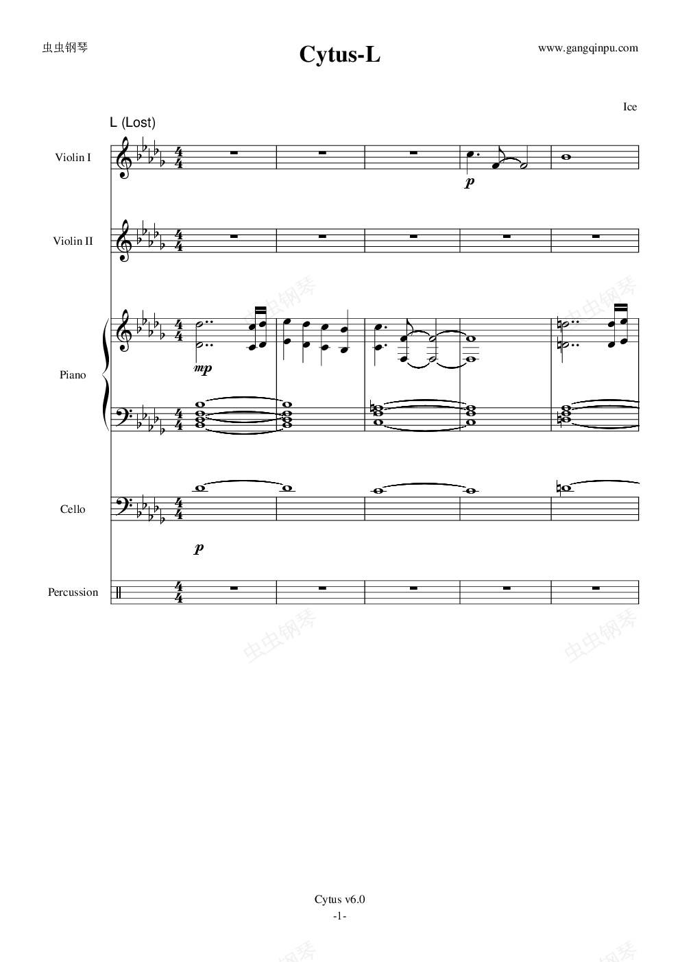 钢琴谱:Cytus-L(Lost)