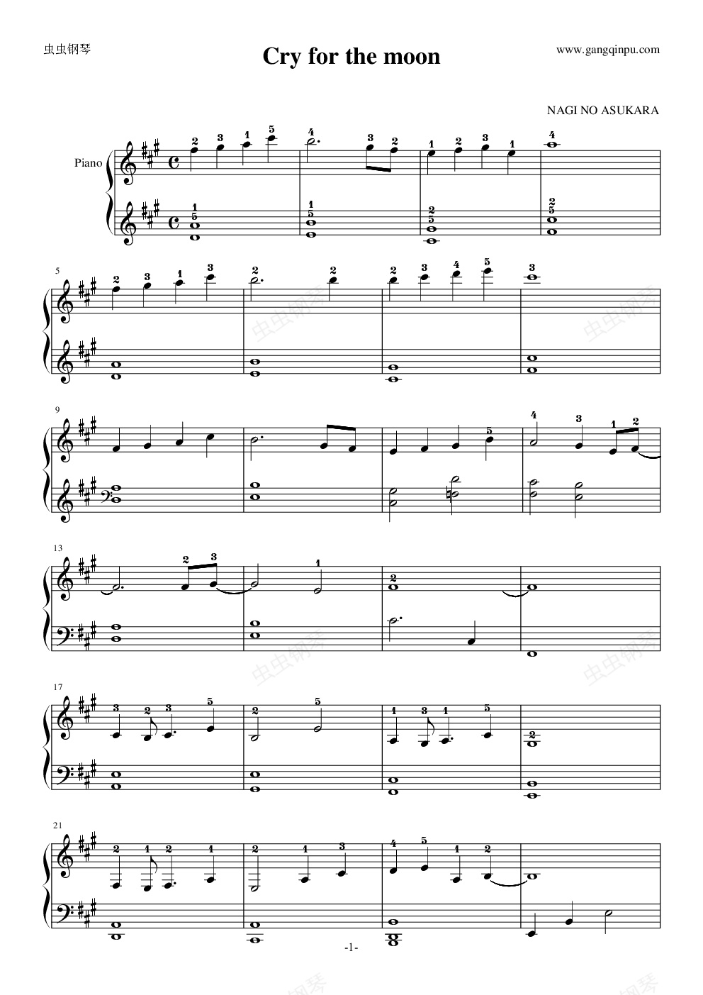 钢琴谱:Cry for the moon