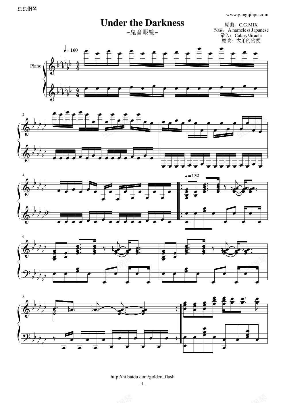 钢琴谱:鬼畜眼镜 under the darkness 整理版