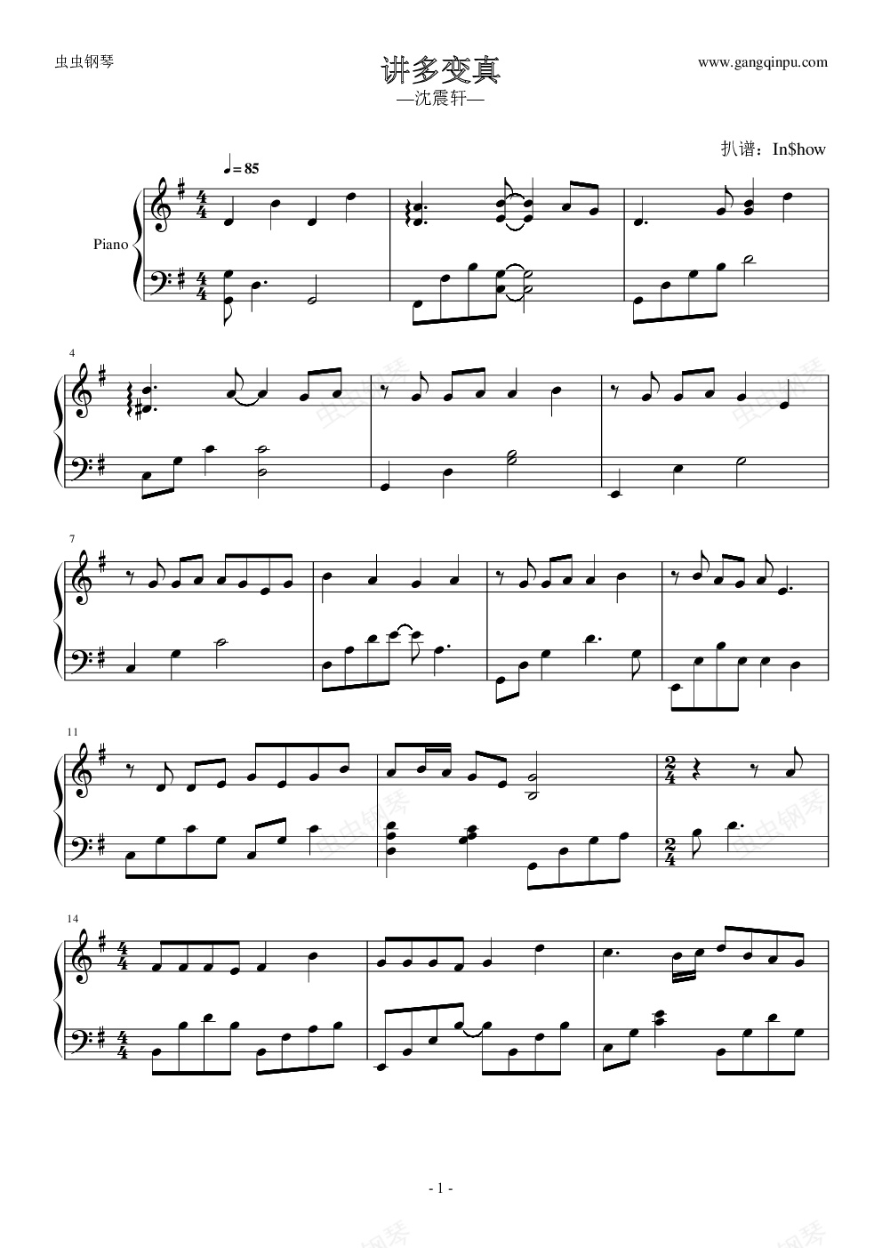 钢琴谱:讲多变真- 沈震轩