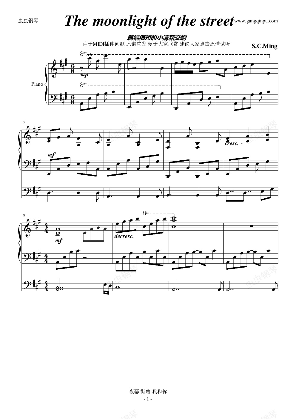 钢琴谱:小清新的合奏-The Moonlight Of The Street