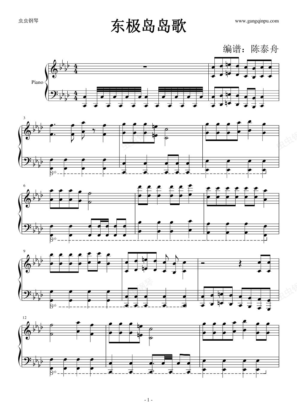 钢琴谱:东极岛岛歌钢琴版