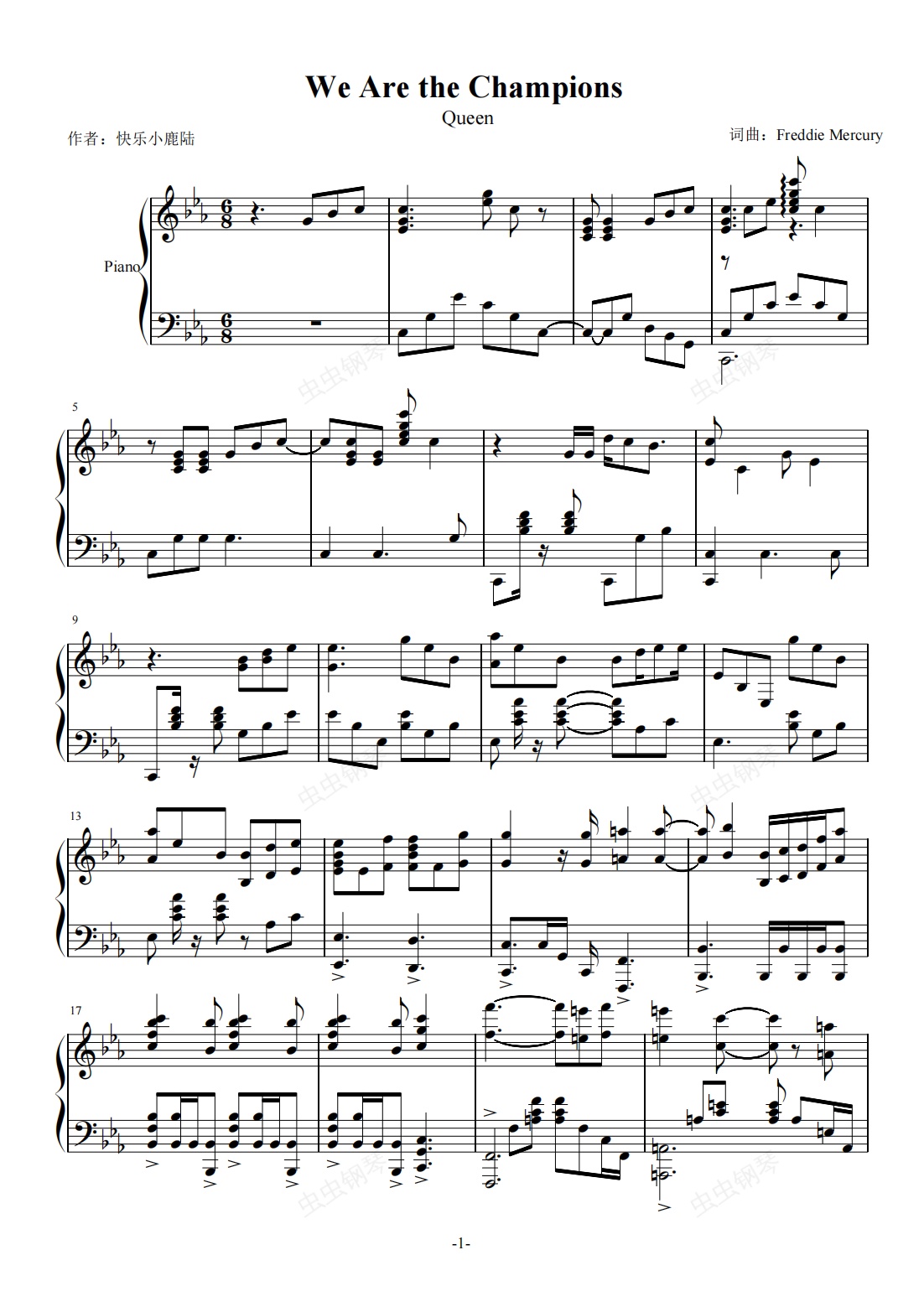 钢琴谱:We are the champions 激昂钢琴谱