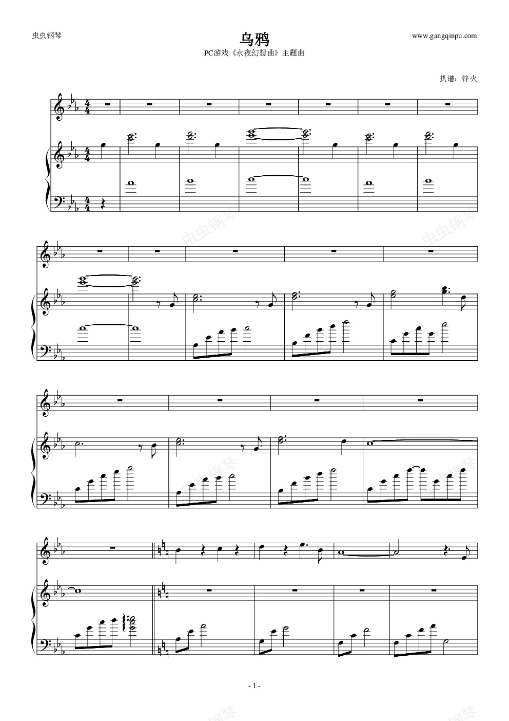 钢琴谱:乌鸦——《永夜幻想曲》主题曲