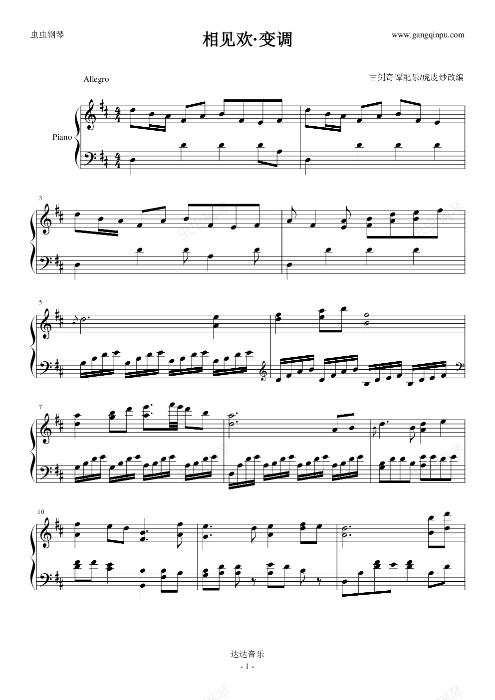 钢琴谱:古剑奇谭配乐相见欢·变调