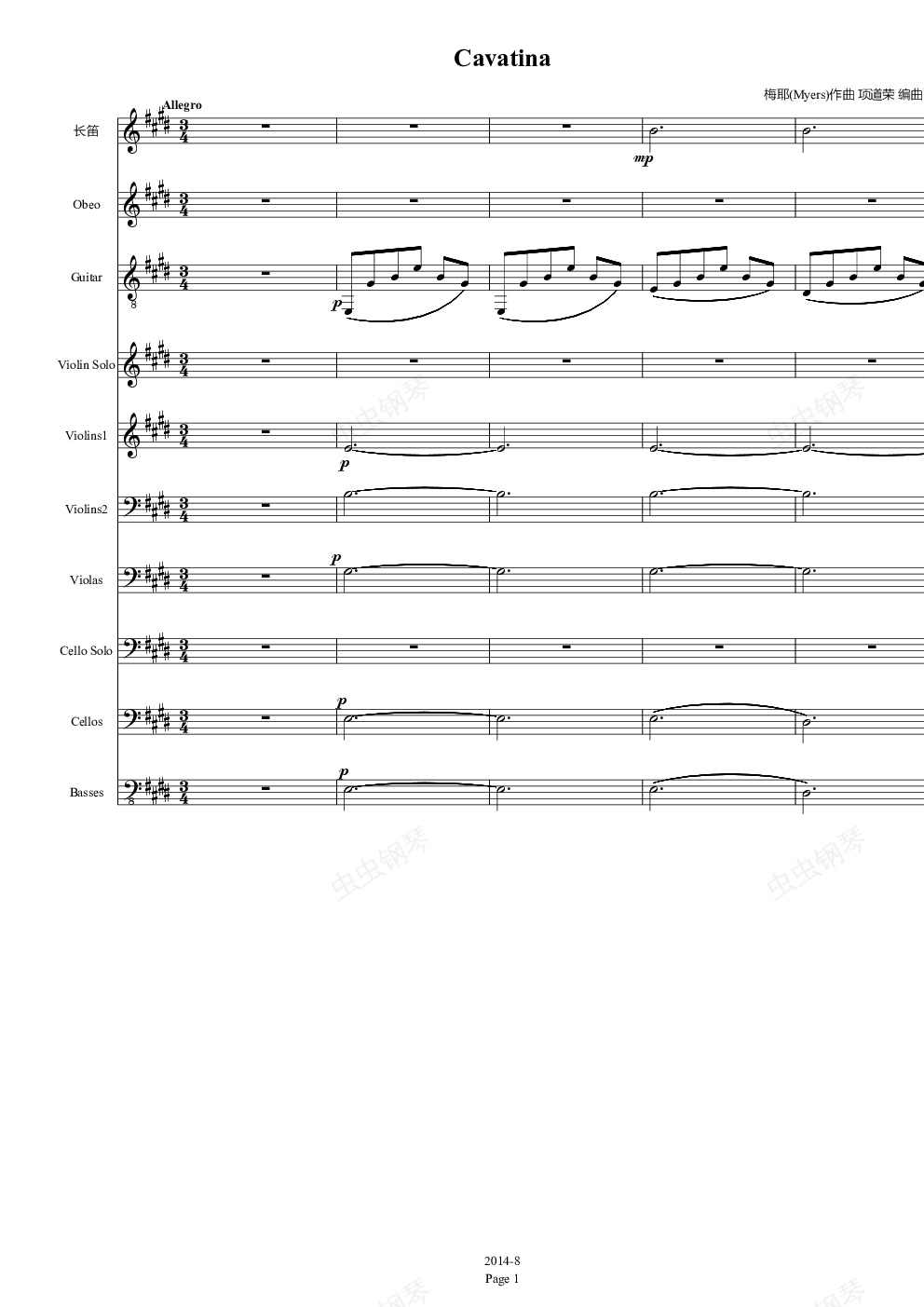 《》(《卡伐蒂娜》)的原意是指抒情的短歌或小品,19世纪时用以指称歌剧中出现的咏叹调部分,不过后来也被广泛运用于器乐演奏的形式,在吉他音乐中,最著名的就是波兰作曲家汤斯曼(A.)为吉他独奏所写的《》。(编注:此曲共有四个乐章,题赠给吉他大师塞戈维亚。)