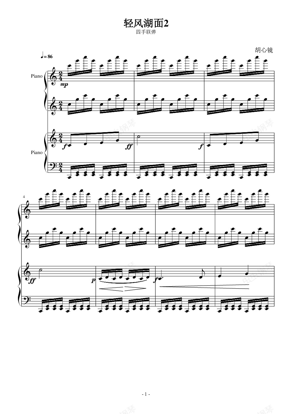 钢琴谱:轻风湖面2(四手联弹)